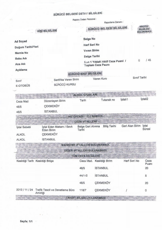 2) Trafik zabıtası tarafından düzenlenen Geçici Olarak Sürücü Belgesi Geri Alma Tutanağı veya Sürücü Belgesi Detay Bilgileri